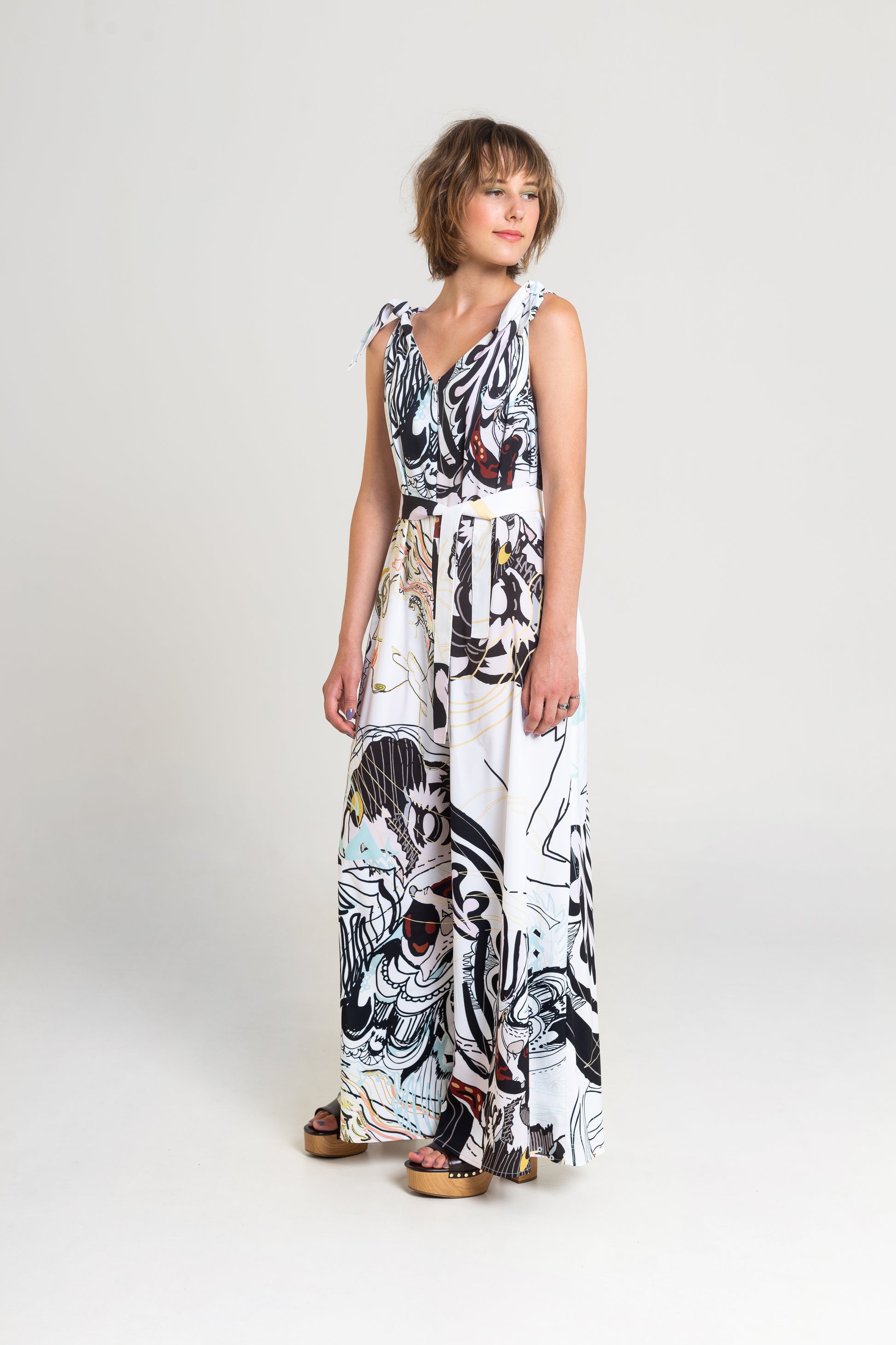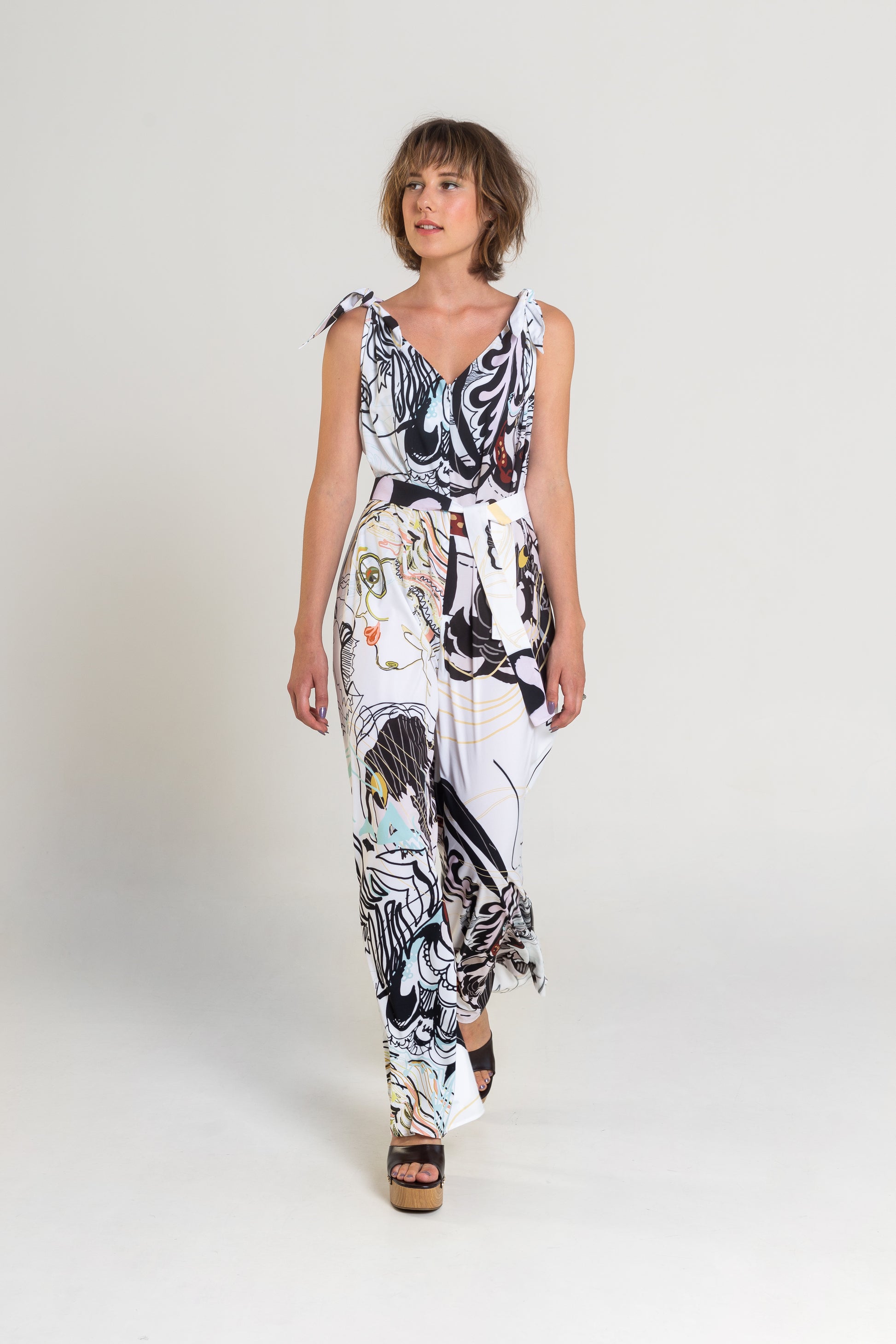 This BATH WHITE jumpsuit is the perfect addition to any wardrobe. Whit its V-neckline, wide palazzo-styled legs, adjustable shoulder straps this easy-to-wear piece makes a stylish statement. Featuring pockets on each side, you can seamlessly transition from work to leisure for a signature look. Its modern style and soft printed fabric make it ideal for several occasion. It comes with a belt to ensure the perfect fit.