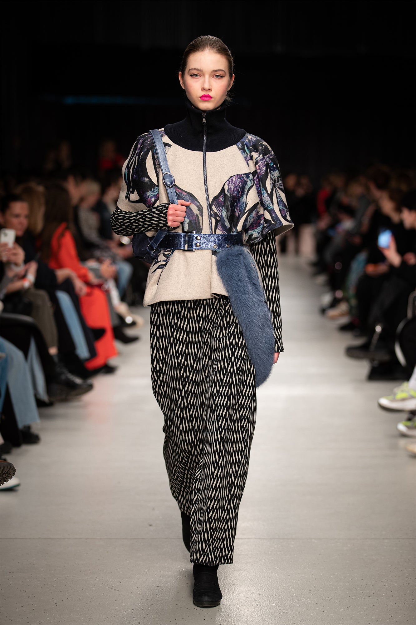 The Blue Crystal Zipped Short Sleeve Jacket combines a distinctive blue crystal-like print on a straight-cut silhouette that falls between the waist and hip. Its elastic ribbed high neck and short sleeves create a refined, contemporary look. The full-length zipping closure and two side pockets blends sophisticated style with everyday practicality. This jacket combines unique style with polished design for a versatile wardrobe essential.