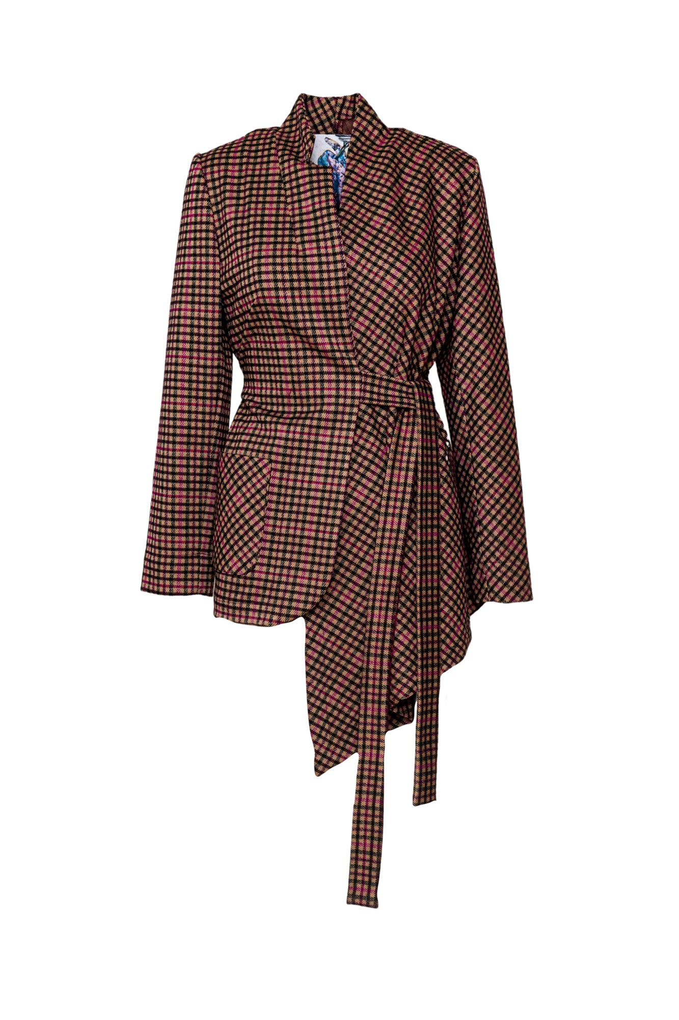 This overlapped, asymmetrical checked jacket combines soft viscose-polyester-elastane mix jersey for a timelessly elegant or sporty look. If you'd prefer a brownish colorcombination of this style, check out the CROSS jacket!