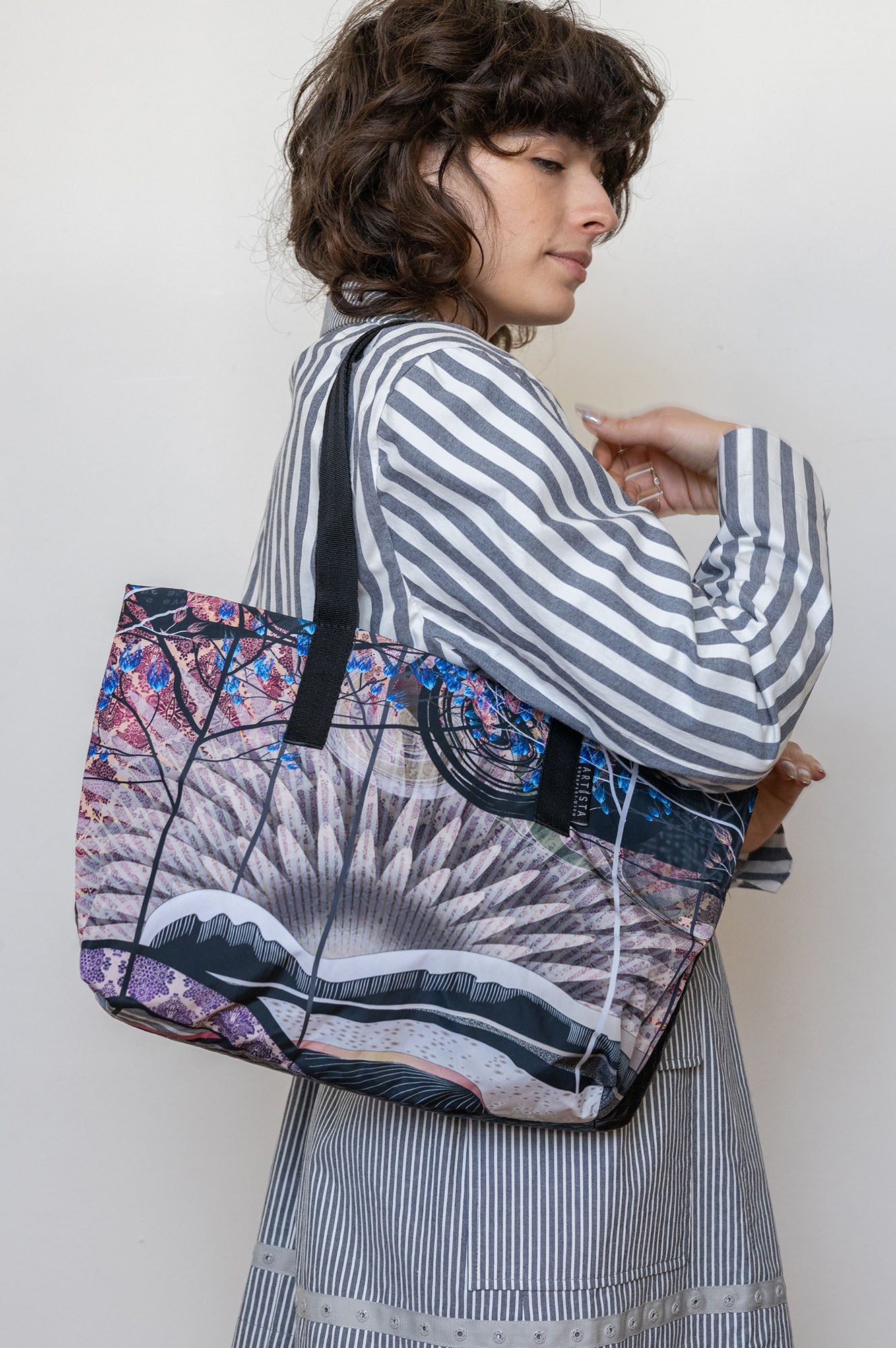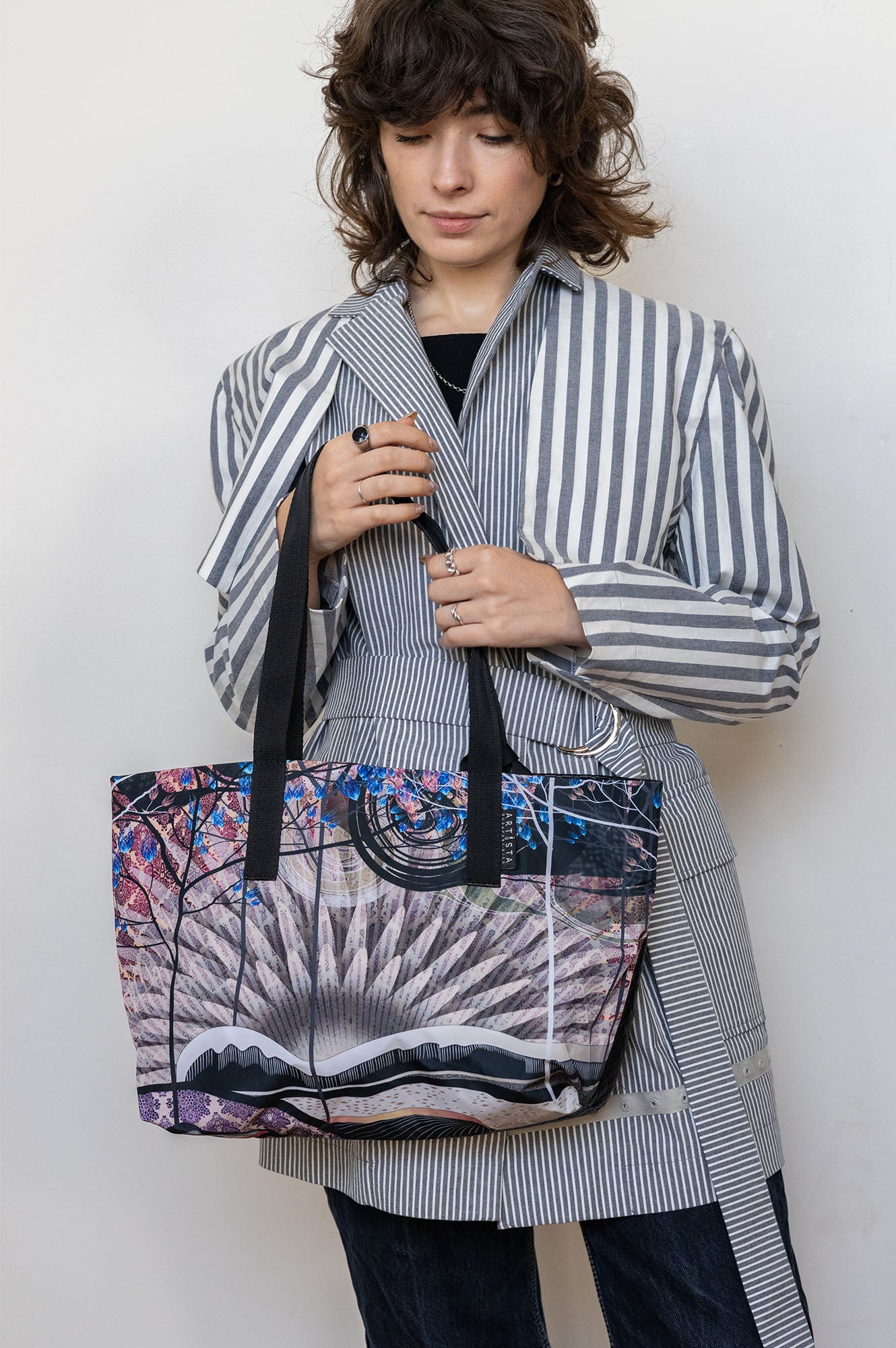Its artful prints and separated pocket inside make it a must-have for any stylish and organized mini shopper. Crafted with luxury materials, you can stay on trend and organized in one sleek accessory.