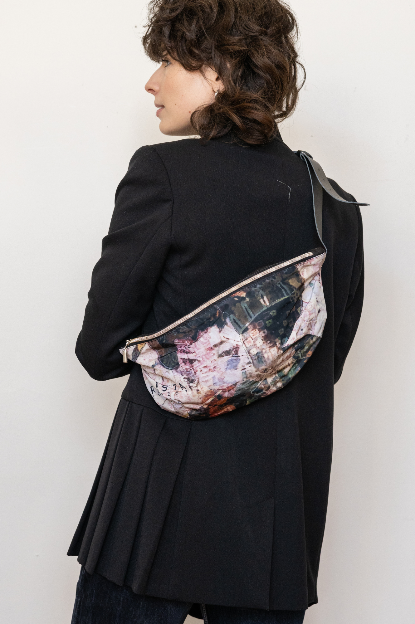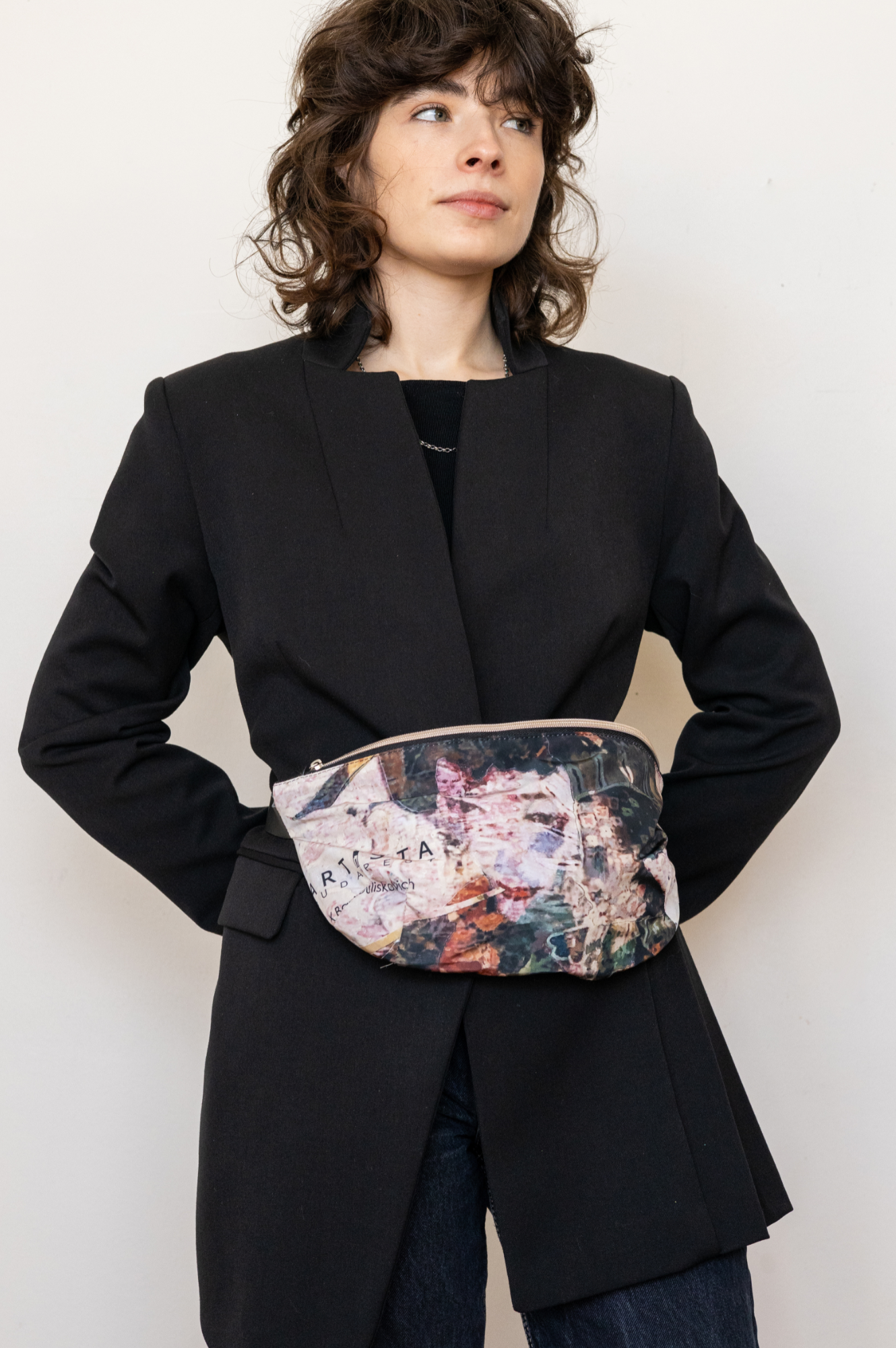 Introducing the chich accessory to elevate your look: the GEISHA bum bag. Featuring a striking artful print on the front and a plain back version on the back. The adjustable leather strap ensures a comfortable fit and a touch of luxury. Combining elegance and functionality, this bag is the perfect way to add sophisticated edge to your style everyday or a special occasion.