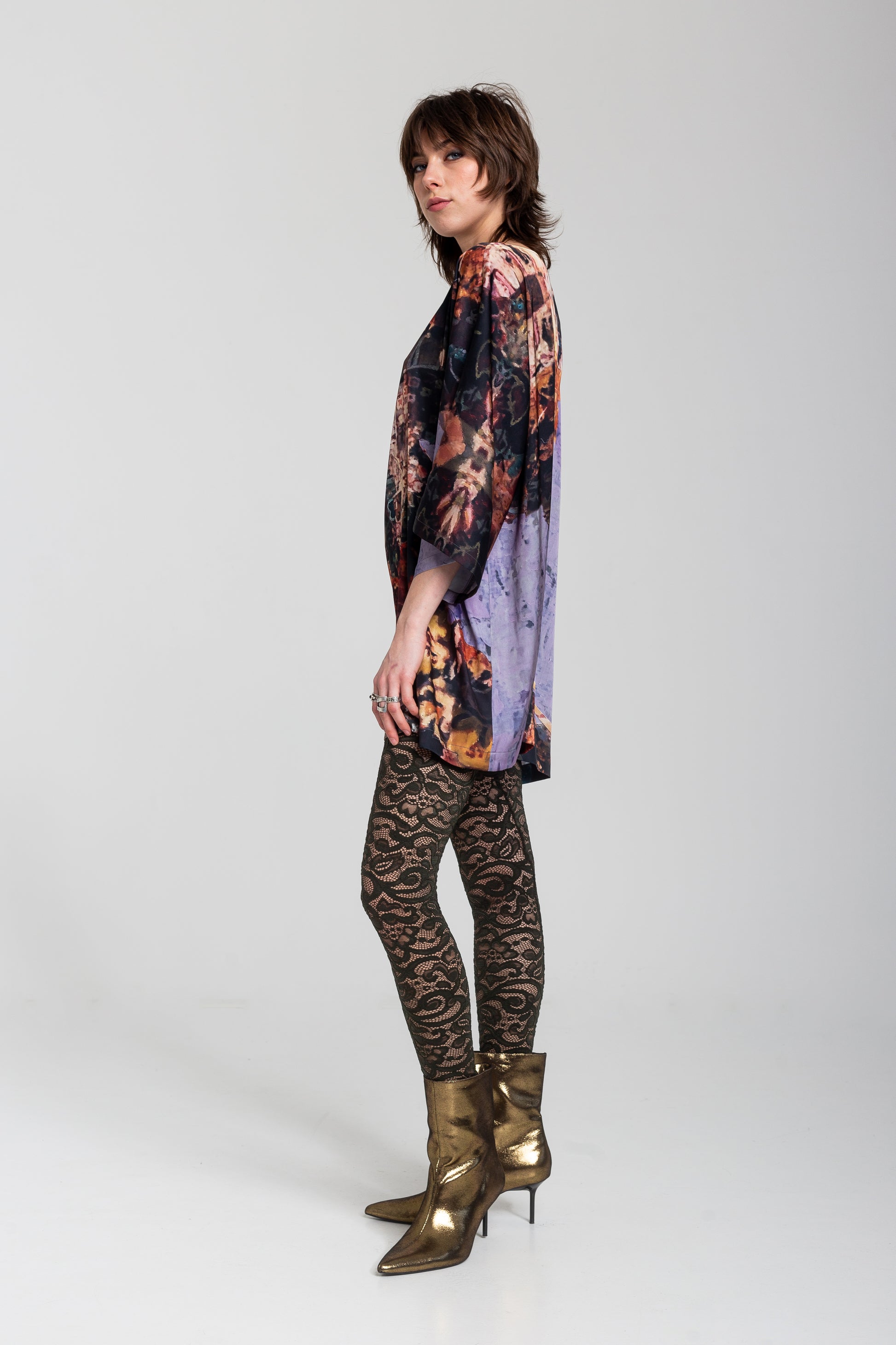 The GEISHA printed dress is a luxurious loose-fitting garment, designed from the finest polyester satin for an elegant and exclusive look. This one-size item infuses tastefulness into any wardrobe.