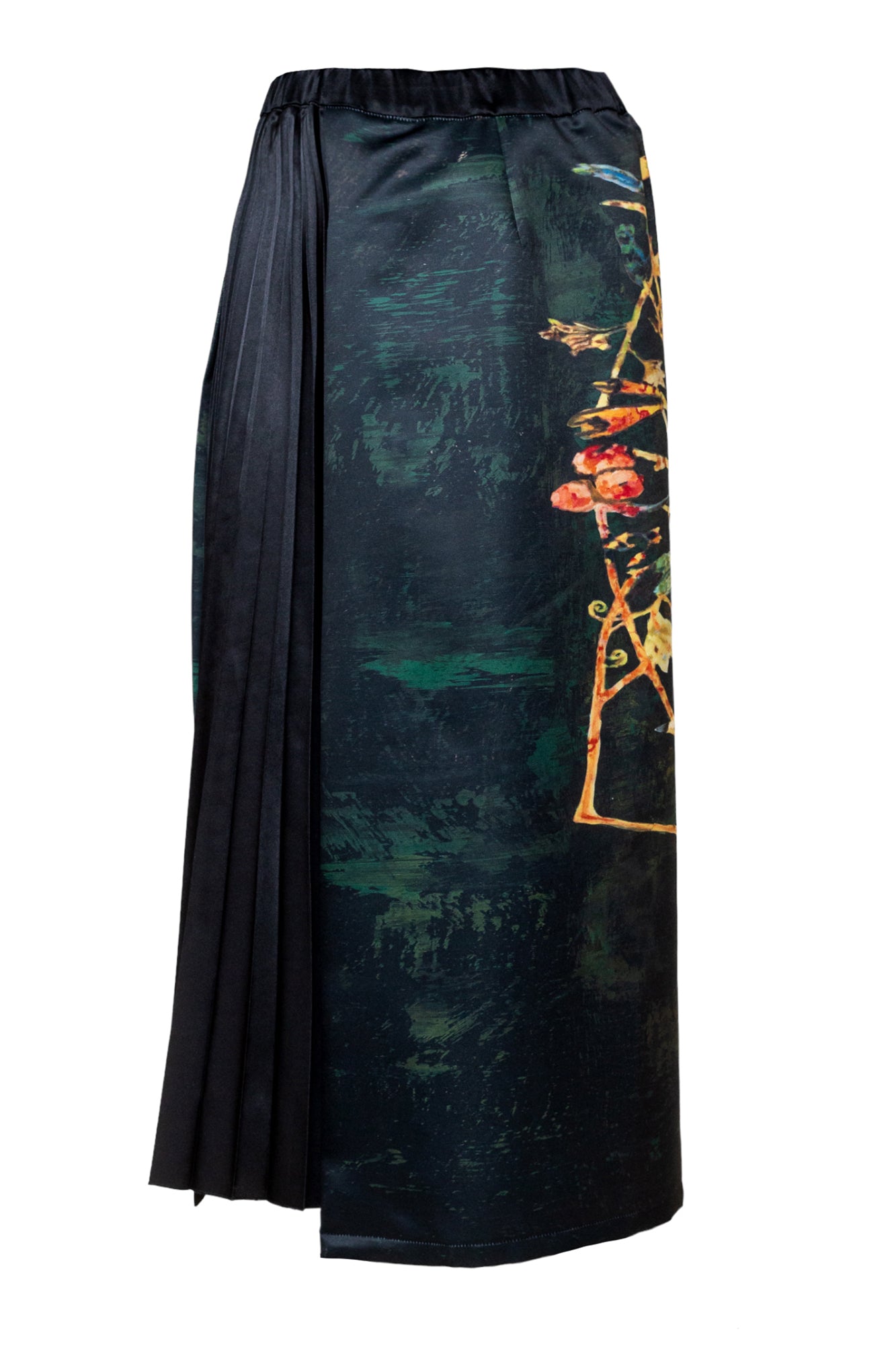 The GIFT long skirt presents a captivating form of elegance with its long flowing silhouette and pleat detail. Crafted to evoke the singular artistic vision of renowned Hungarian-Ukrainian painter, Bazil Duliskovich. Incorporating his vibrant palette and masterful brushwork, this piece is inspired by Bazil’s vision and the drama of his layered aesthetics.