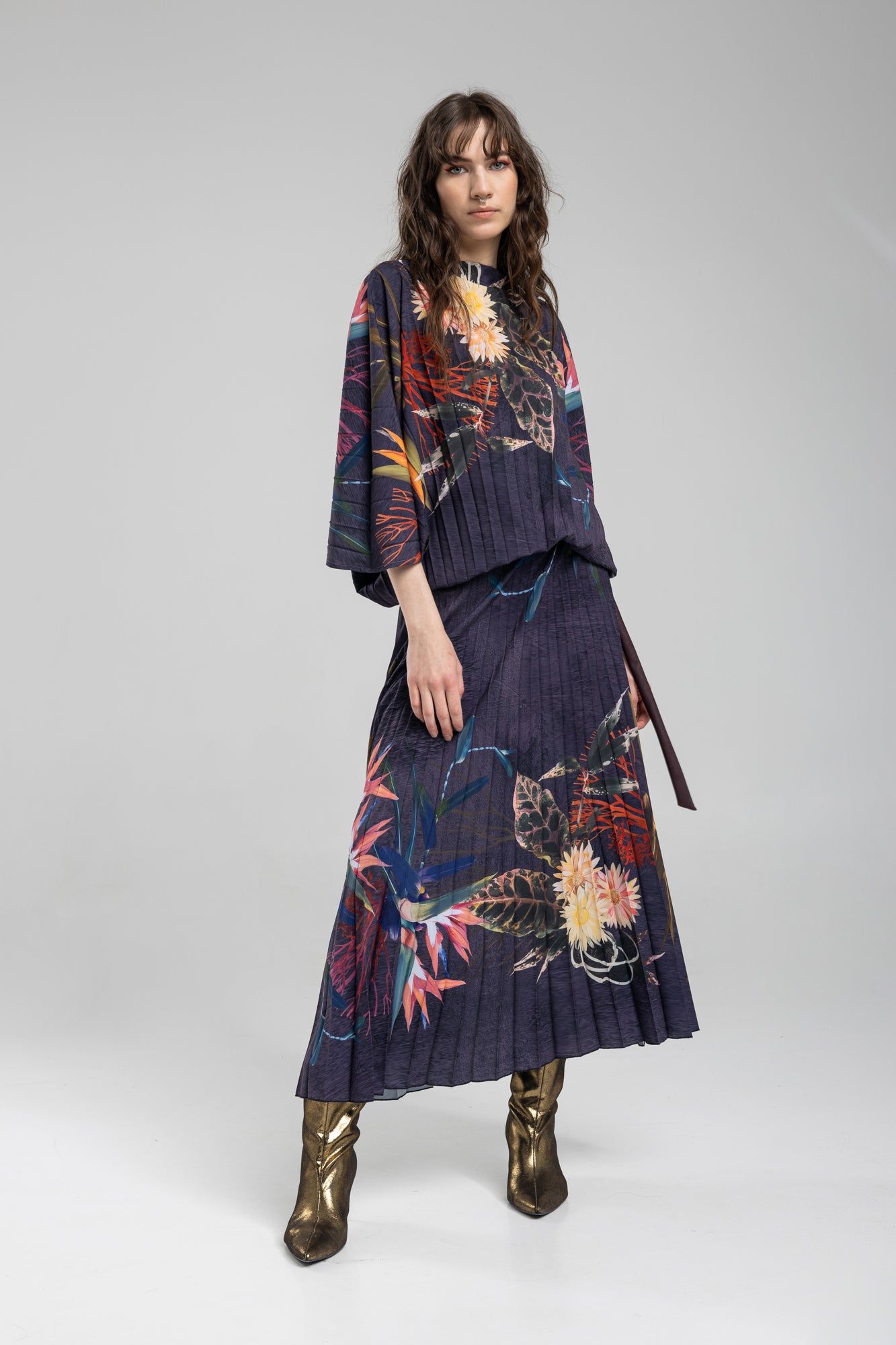 György Korga's, Hungarian Surrealist Painter series made in the seventies was based on Ikebanas. The prints of this season's collection based on them. In addition to the aesthetics of the paintings, the spirit of ikebana provided a lot of inspiration during the design, as it symbolizes five things such as negative space , asymmetry, balance, avoidance of intentionality and the concept of just enough.