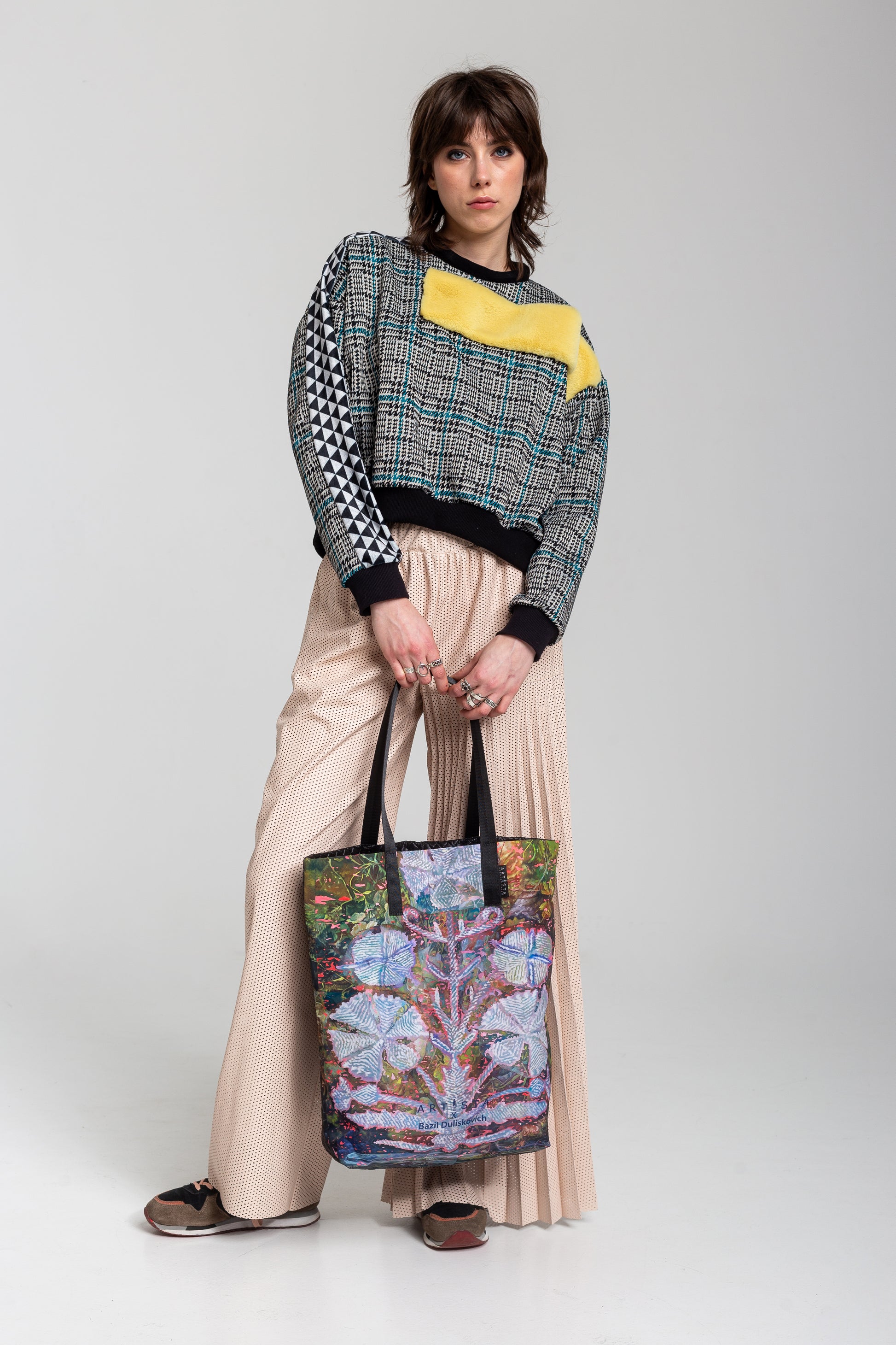 The unique and colourful print was designed by the artwork of our painter friend, Bazil Duliskovich. The layers and aesthetics of Bazil's paintings are one of the main inspirations for this autumn-winter collection.