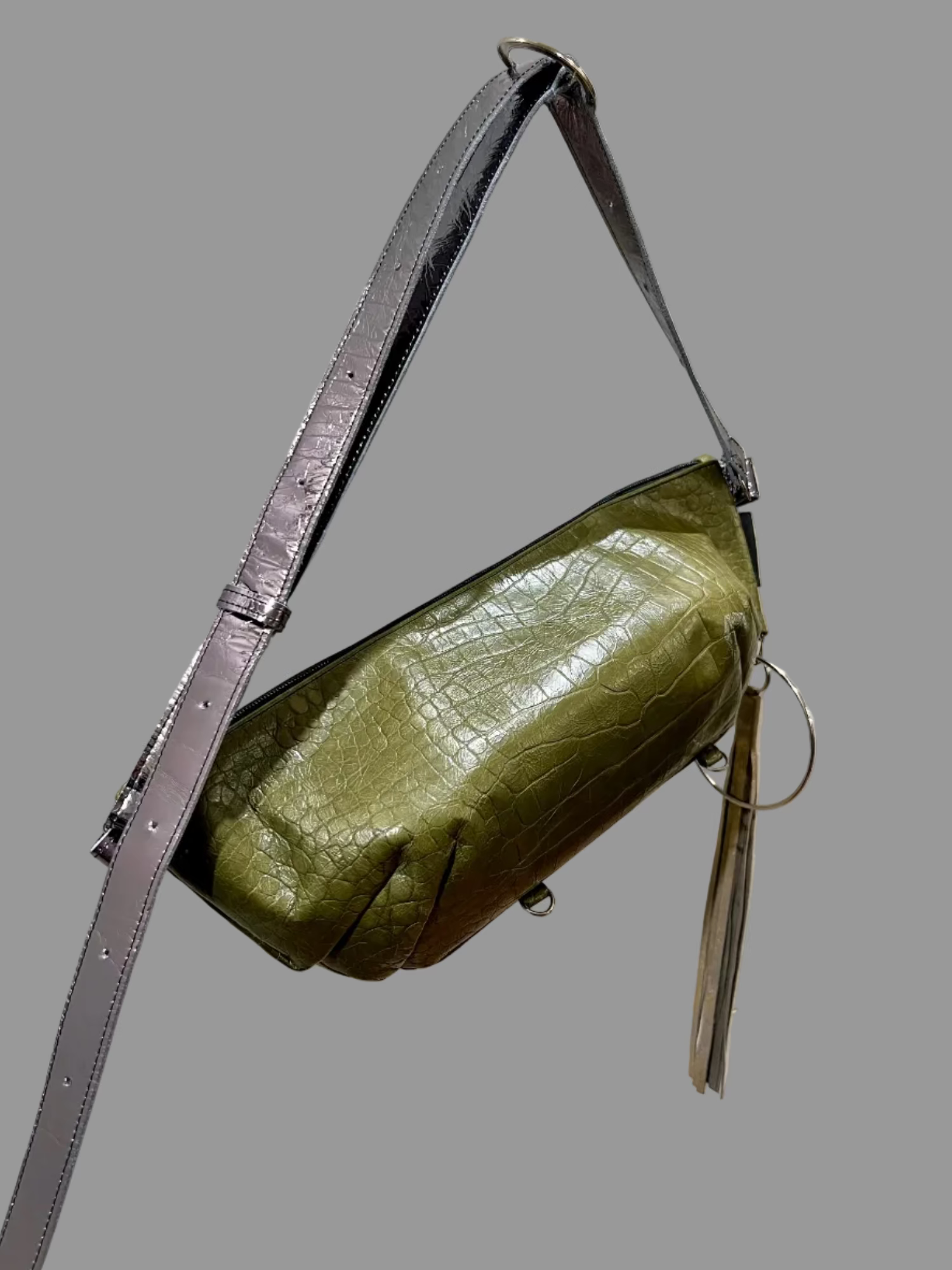 The bag can be accessorized with an enormous silver hoop, a leather tassel and a leatherette rope. Customize the bag as You wish with these accessories.