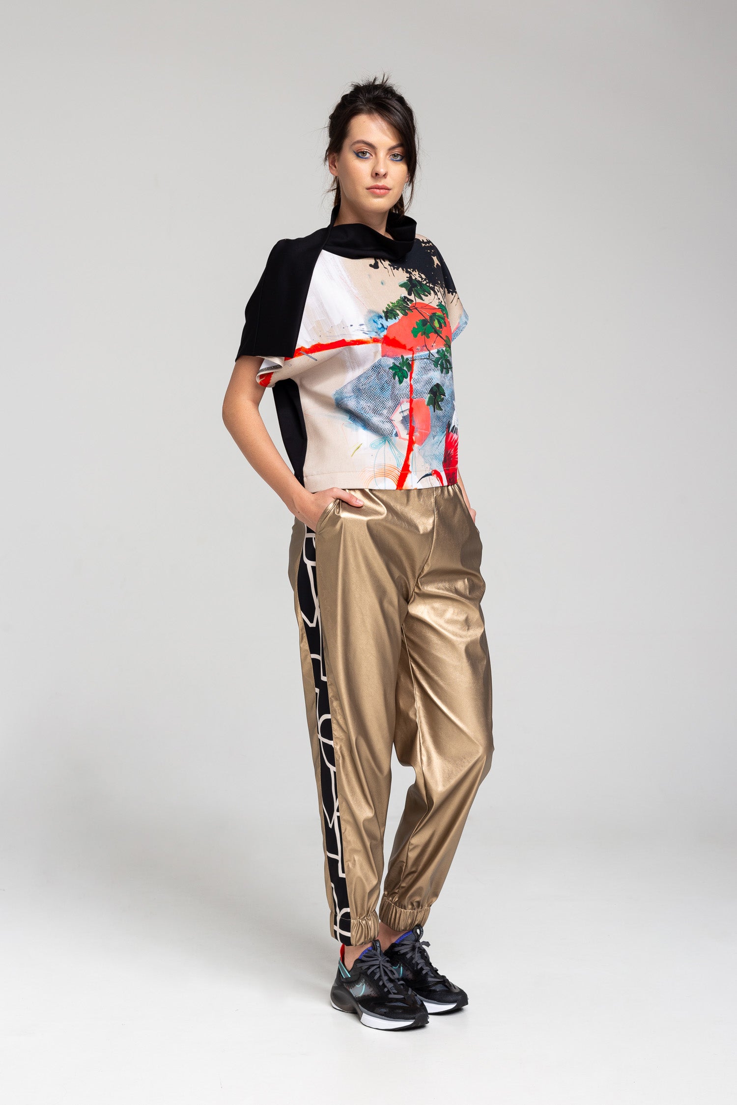 Easy top with asymmetric neck and printed front.