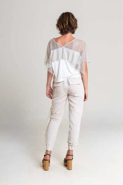 Get ready for summer with PANKA Pants! These essential bottoms feature frills on the sides and convenient side pockets. The elastic waist ensures a comfortable fit, while the soft viscose blend adds a touch of luxury. You might like to pair it with DORI Top.
