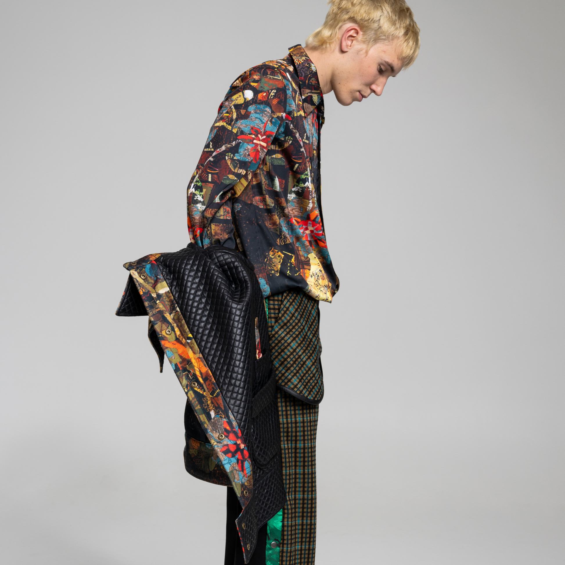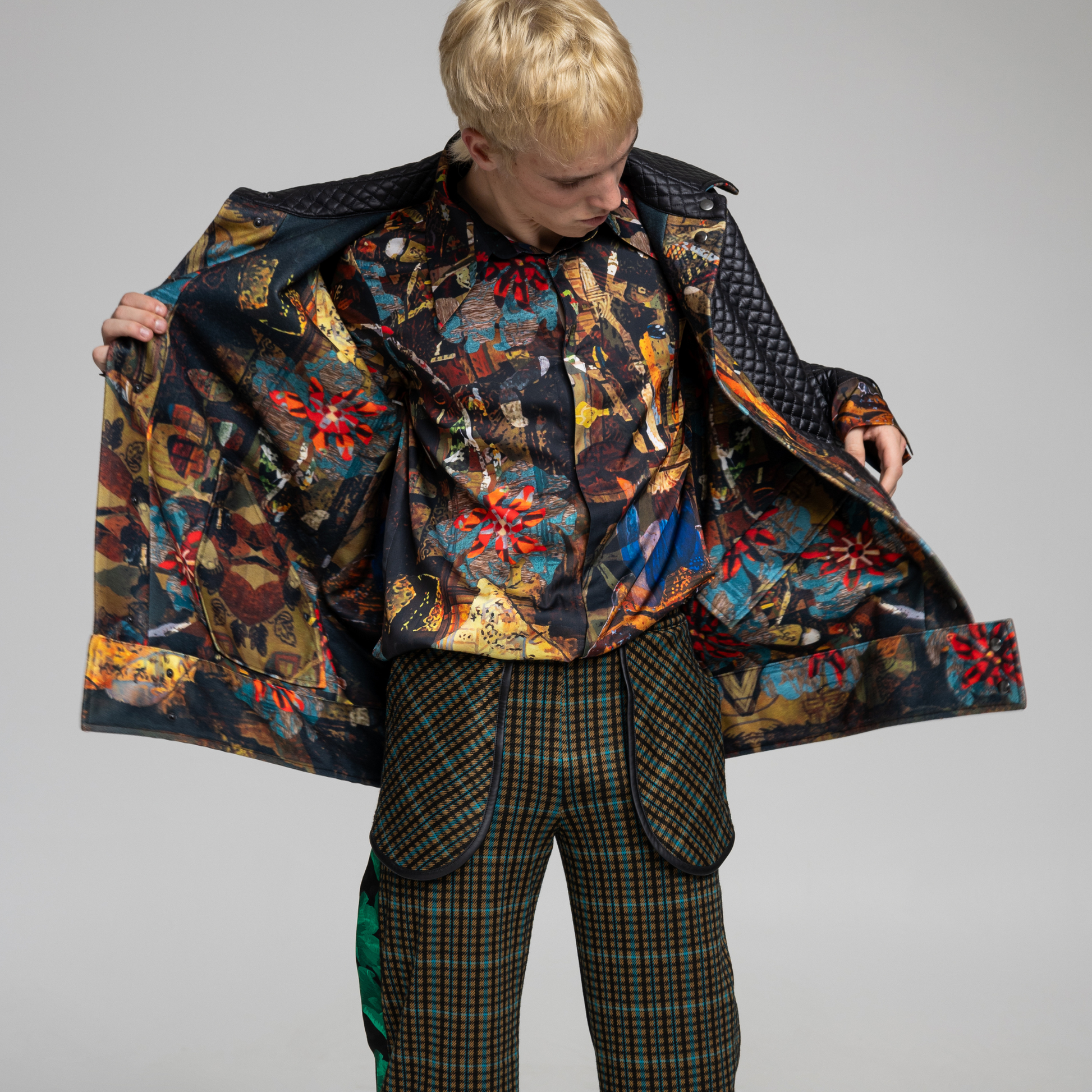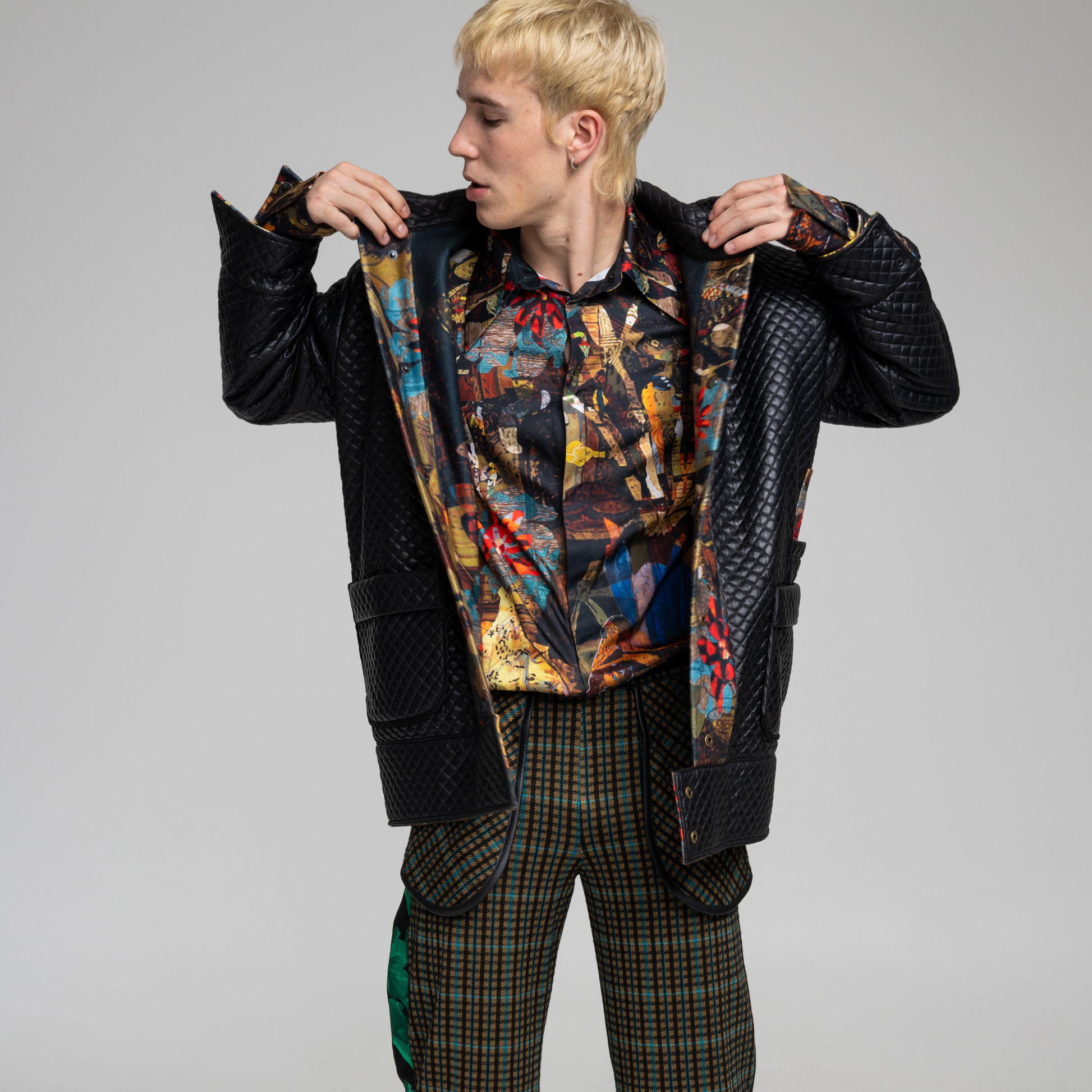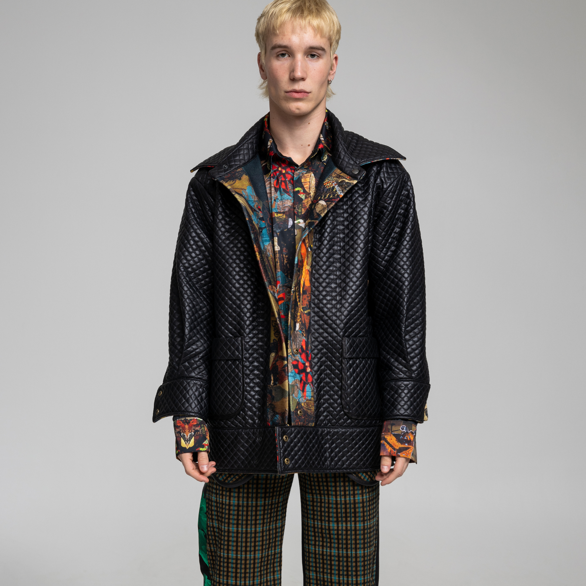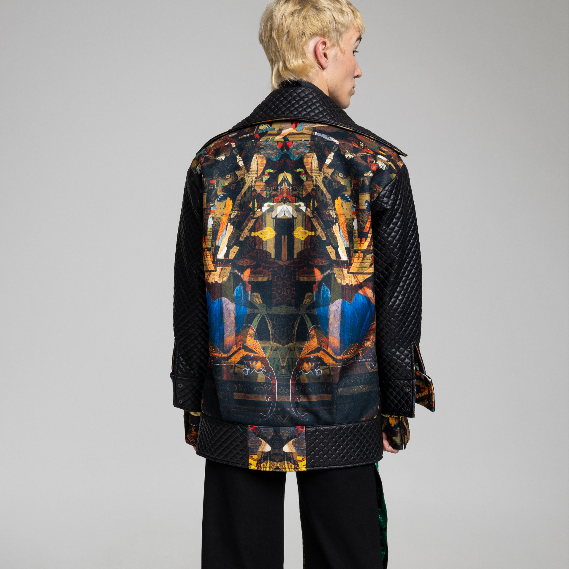 The PLAYER jacket 2.0 is where classic styling meets modern design. The reversible design adds versatility, while the generous pockets and huge collars offer practicality. With an edgy black quilted exterior and an artful printed vibrant appeal, this jacket merges fashion and function with a luxurious edge.