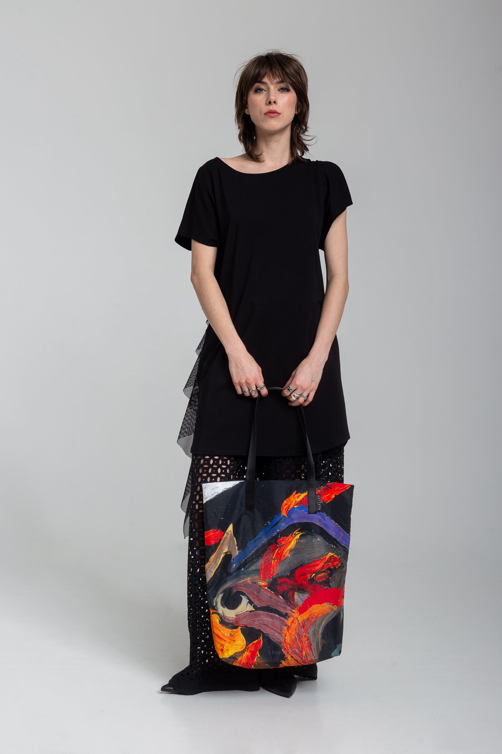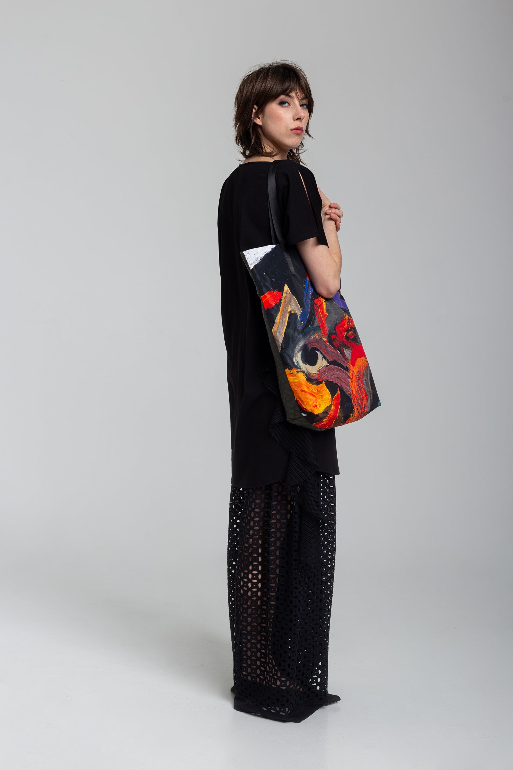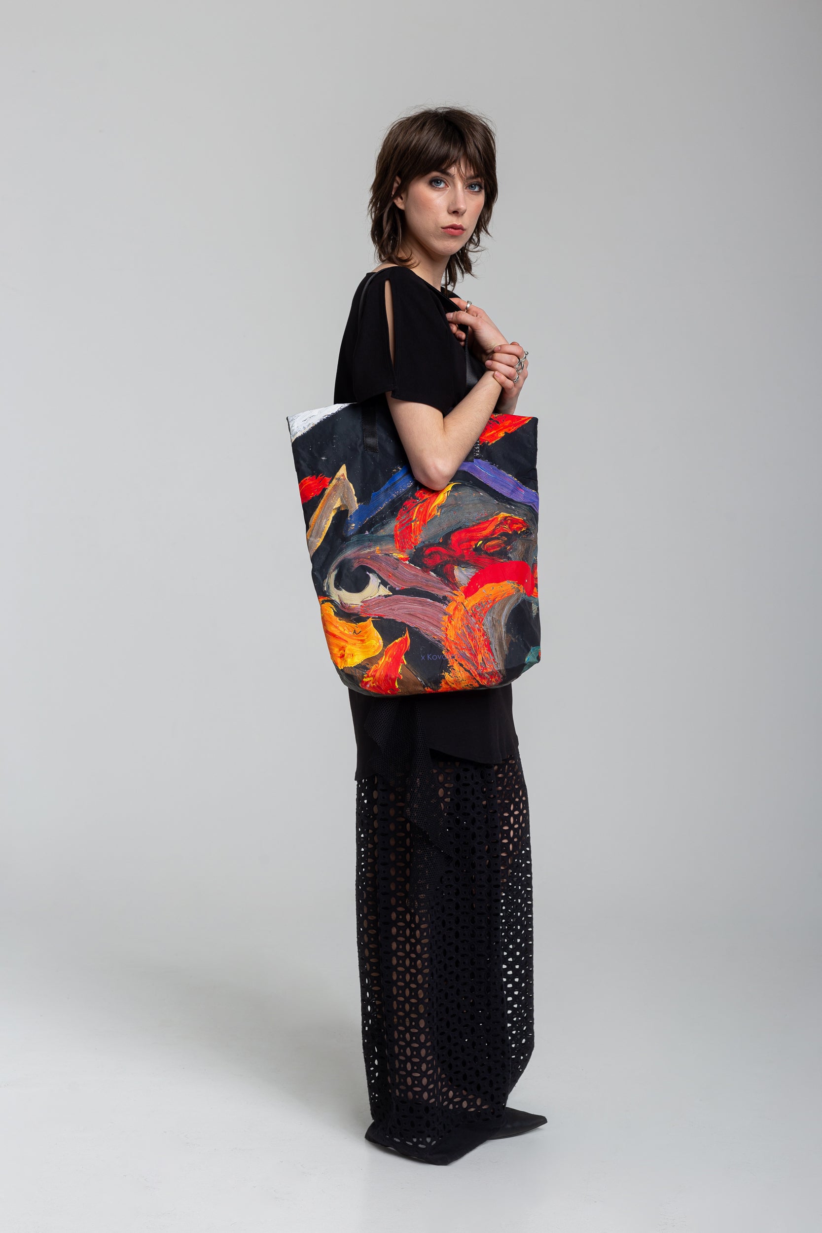 Printed tote bag, with a unique paint of Gyorgy Kovasznai , the free-spirited, universal artist. This painting was appeared in his film Ca ira.