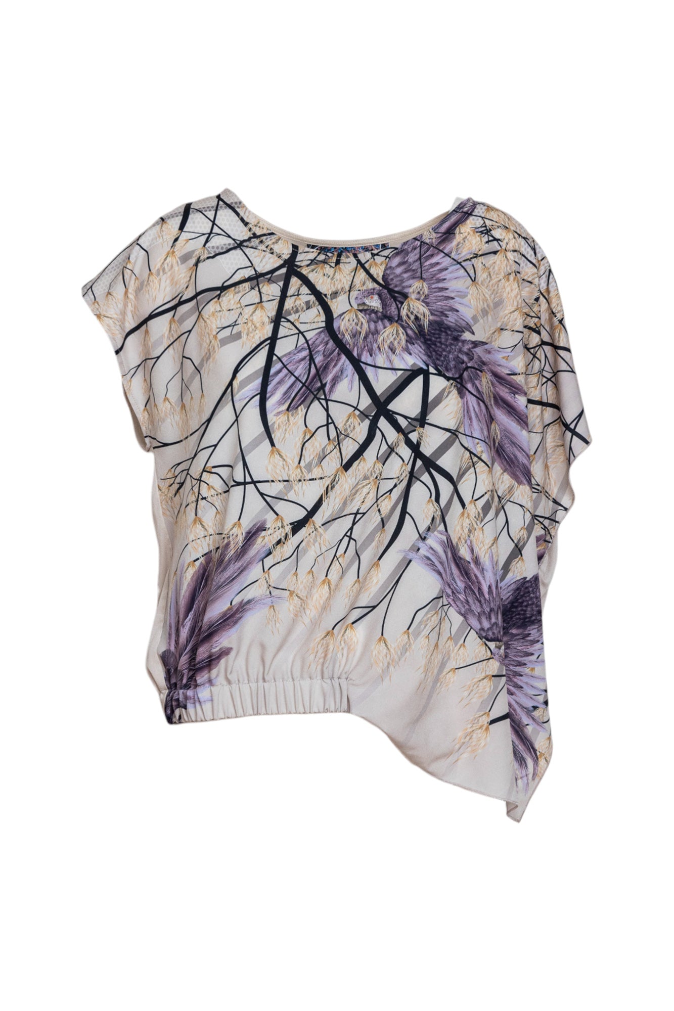 Experience the art of asymmetry with the RIZZ Asymmetric Top. Crafted with a boat neck and elastic waist, this unique printed top boasts an asymmetric finish, delicately designed with short sleeves. With its versatile styling and cool soft colours this top is perfect for any occasion.
