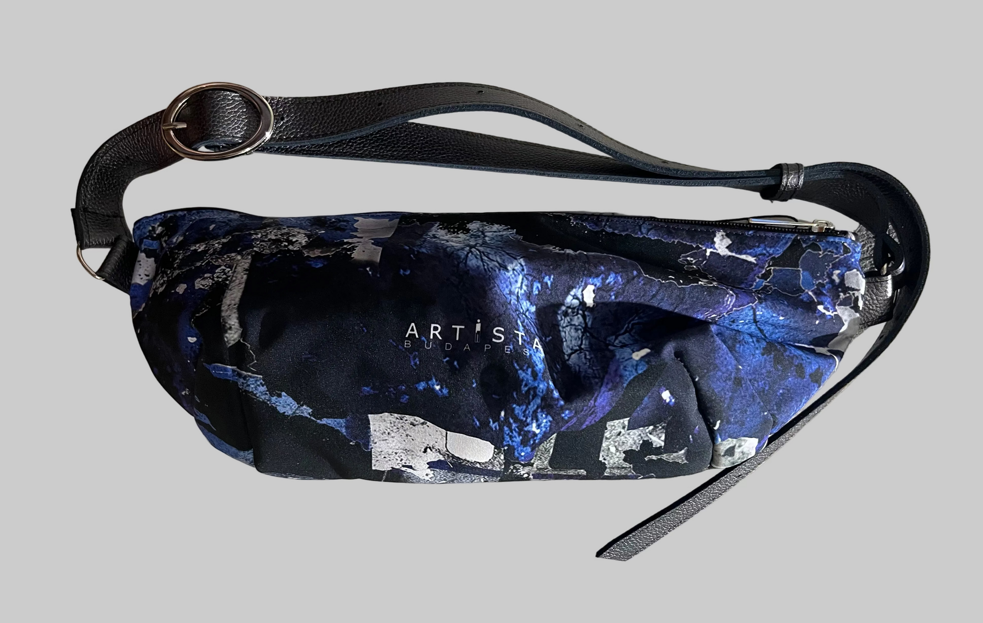 Introducing the chich accessory to elevate your look: the SECRET STORIES bum bag. Featuring a striking artful print on the front and a plain back version on the back. The adjustable leather strap ensures a comfortable fit and a touch of luxury. Combining elegance and functionality, this bag is the perfect way to add sophisticated edge to your style everyday or a special occasion.